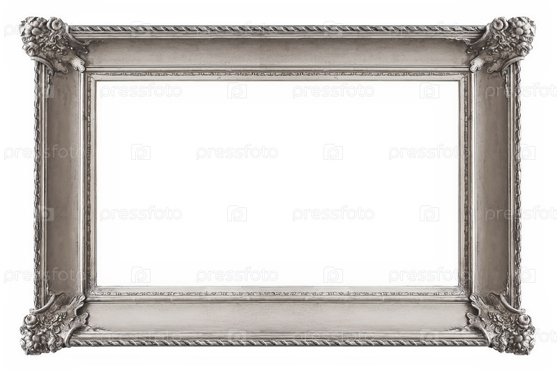 Панорамная серебряная рама для картин, зеркал или изолированной фотографии на белом фоне с готовым вырезом