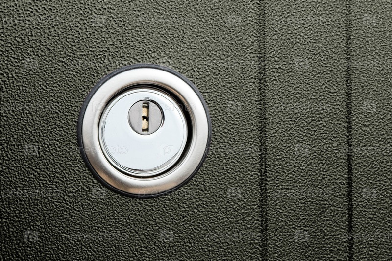 Металлическая часть входной двери: текстура металлической поверхности и замка
