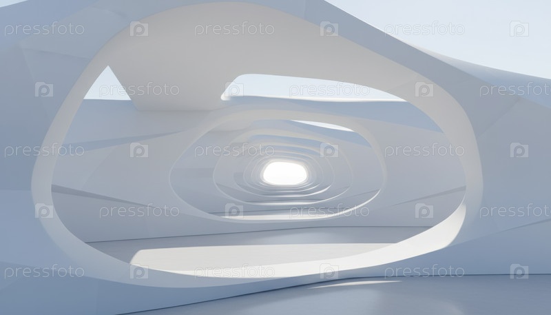 Абстрактный футуристический коридор в цвете Cloud Dancer, выражающий текущие инновации архитектуры воображение и дальновидные тенденции дизайна интерьера