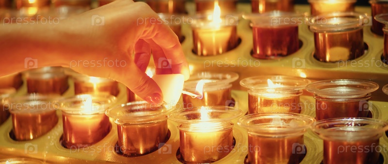 Близкий план неузнаваемой молодой женщины, освещающей ручной ароматную свечу, держащейся в руках