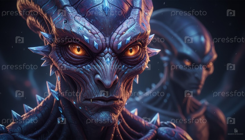 Фантастические инопланетные персонажи с сияющими глазами изображены в драматических художественных произведениях на тему научной фантастики