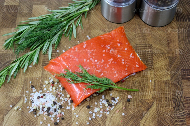 Кусок красной рыбы на деревянной доске