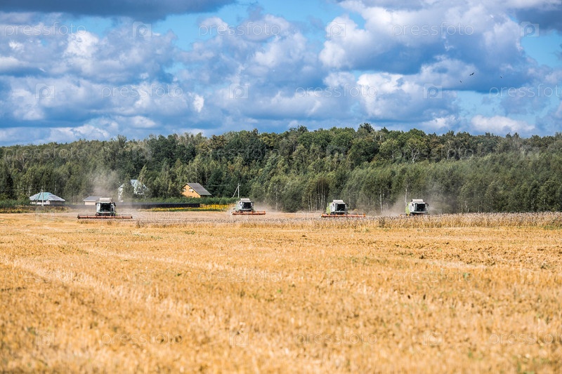 Сельскохозяйственная промышленность. комбайн подбирает золотые колоски спелой пшеницы. концепция посадки и сбора обильного урожая. сельскохозяйственные машины
