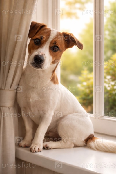 Портрет собаки джек рассел терьер около окна