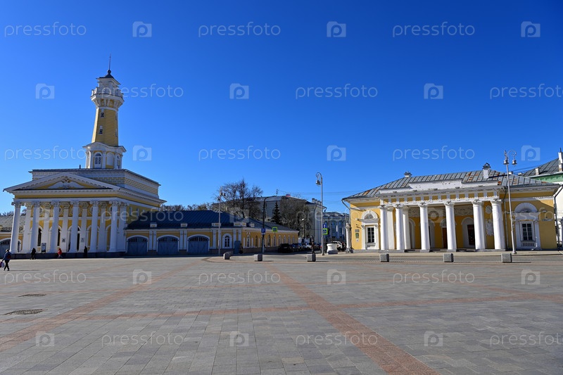 Пожарная каланча и другие старинные здания в центре Костромы
