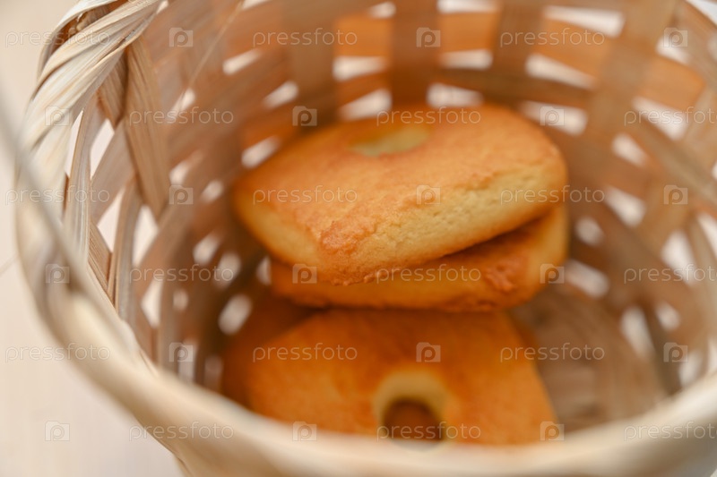 Закрыть печенье из песка в корзине с викером Домашнее хлебопекарное натюрморт