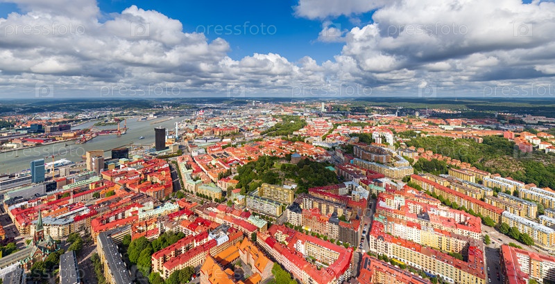 Гетеборг, Швеция Панорама города летом в пасмурную погоду