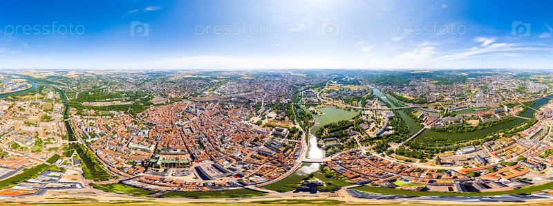 Мец, Франция.Панорама города в летний день.Солнечная погода.Панорама 360.Вид с воздуха