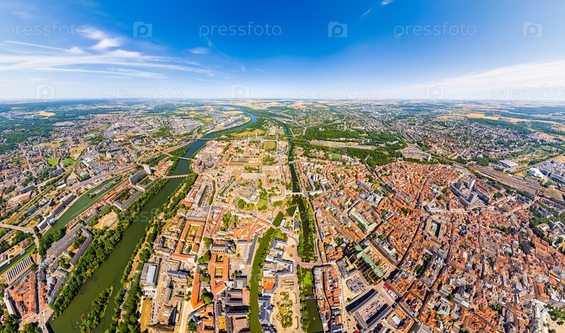 Мец, Франция.Панорама города в летний день.Солнечная погода.Вид с воздуха