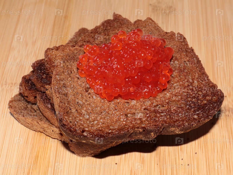 Тост из темного ржаного хлеба с кучей красной лососевой икры
