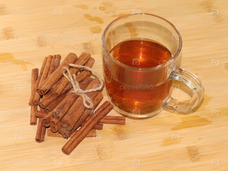 Стакан зеленого ароматного чая и кучу палочек корицы для придания вкуса