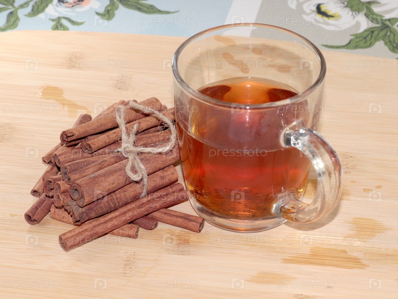 Стакан зеленого ароматного чая и кучу палочек корицы для придания вкуса