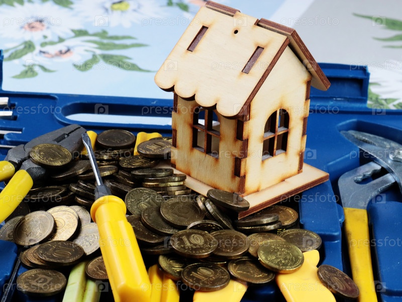 Набор строительных инструментов и кучу металлических монет как способ заработать деньги при ремонте дома