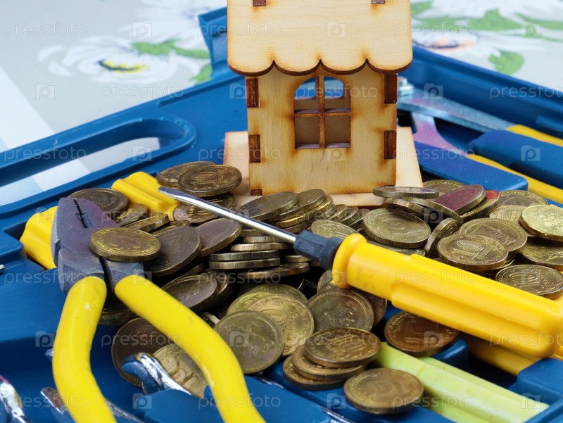 Набор строительных инструментов и кучу металлических монет как способ заработать деньги при ремонте дома