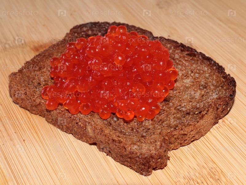 Кусок ржаного хлеба с куском икры красного лосося на завтрак