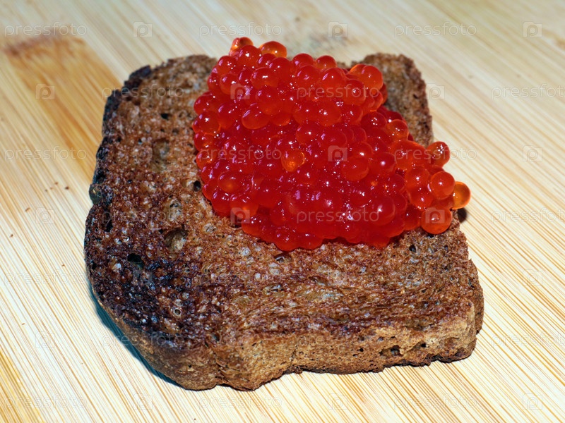 Кусок ржаного хлеба с куском икры красного лосося на завтрак