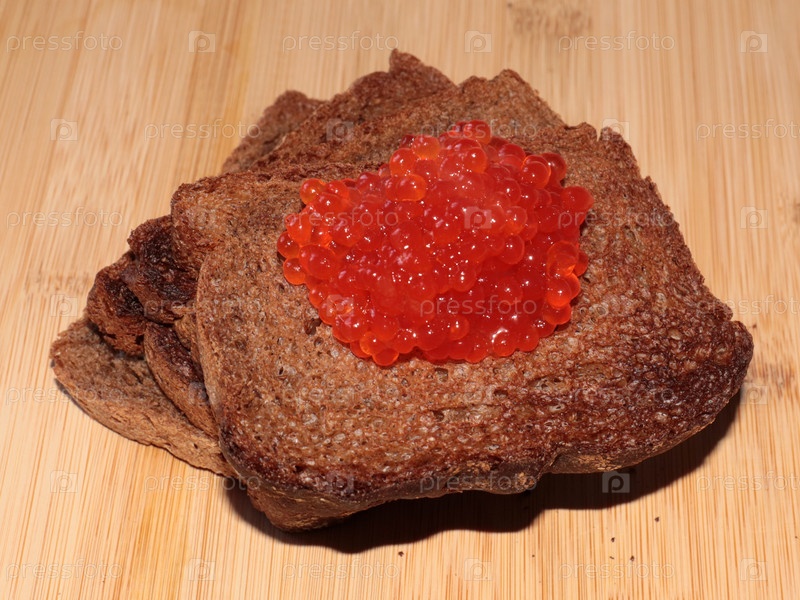 Кусок ржаного хлеба с куском икры красного лосося на завтрак