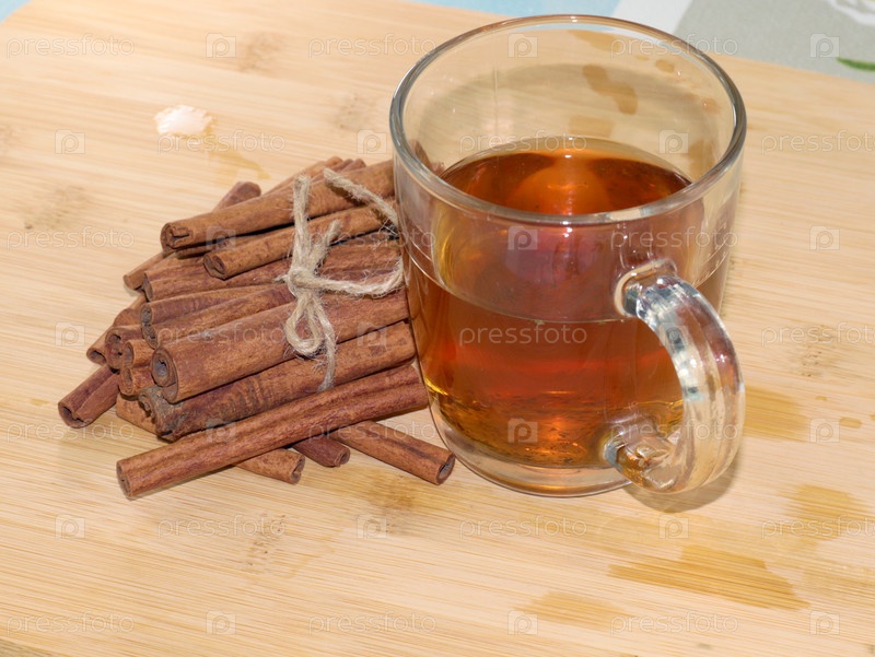 Стакан зеленого ароматного чая и кучу палочек корицы для придания вкуса