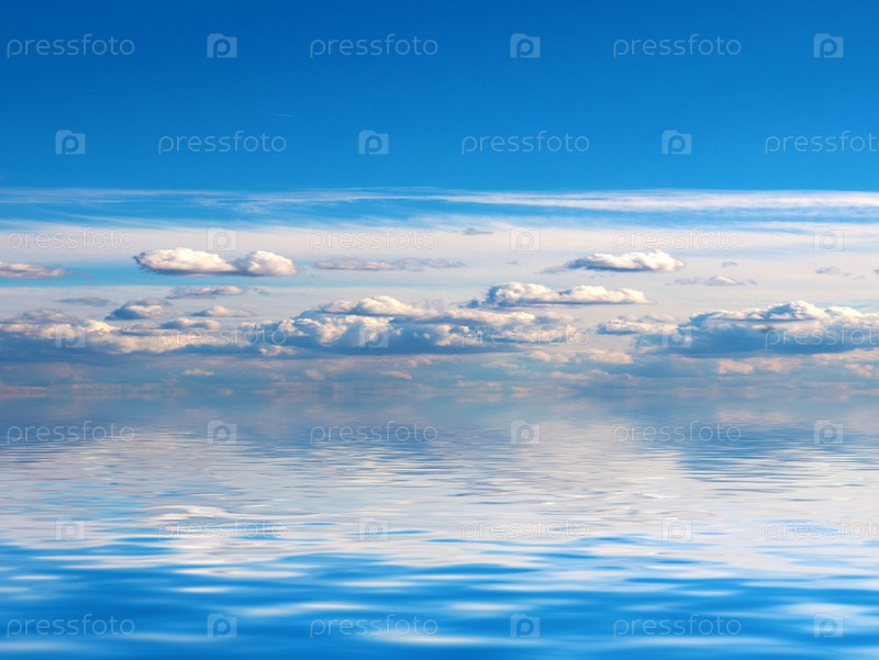 Красивое облачное небо отражается на спокойной поверхности моря