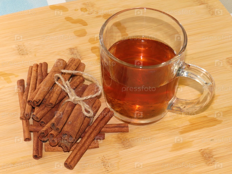 Стакан зеленого ароматного чая и кучу палочек корицы для придания вкуса