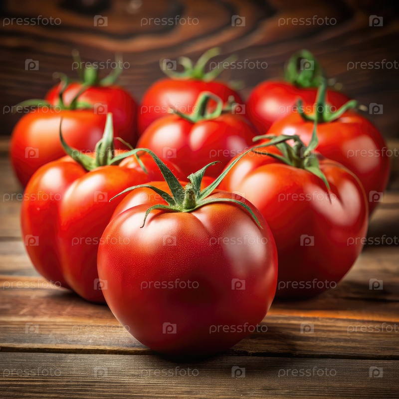 Близкий взгляд на спелые красные помидоры, расположенные на деревянной поверхности