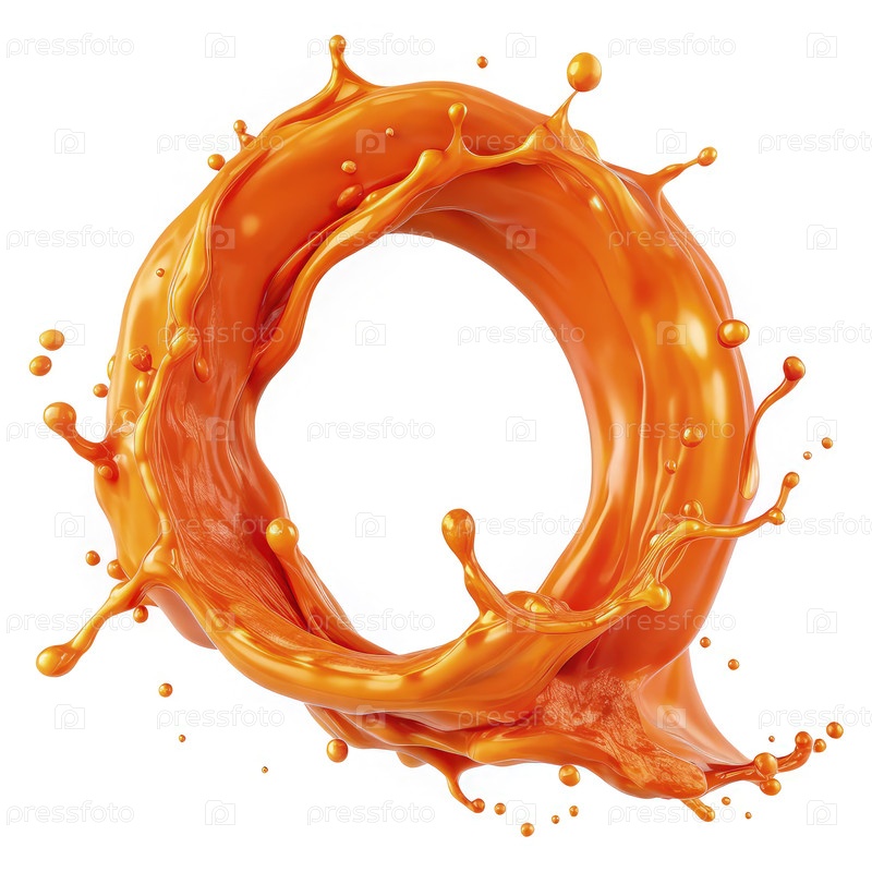 Вибрирующие оранжевые жидкие брызги создают художественные формы на белом фоне