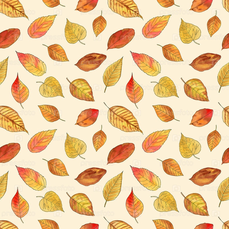 Осенние листья в стиле эскиз. Акварельный рисунок. Дизайн для ткани, настенные покрытия, открытки, приглашения, бумага для скрапбука