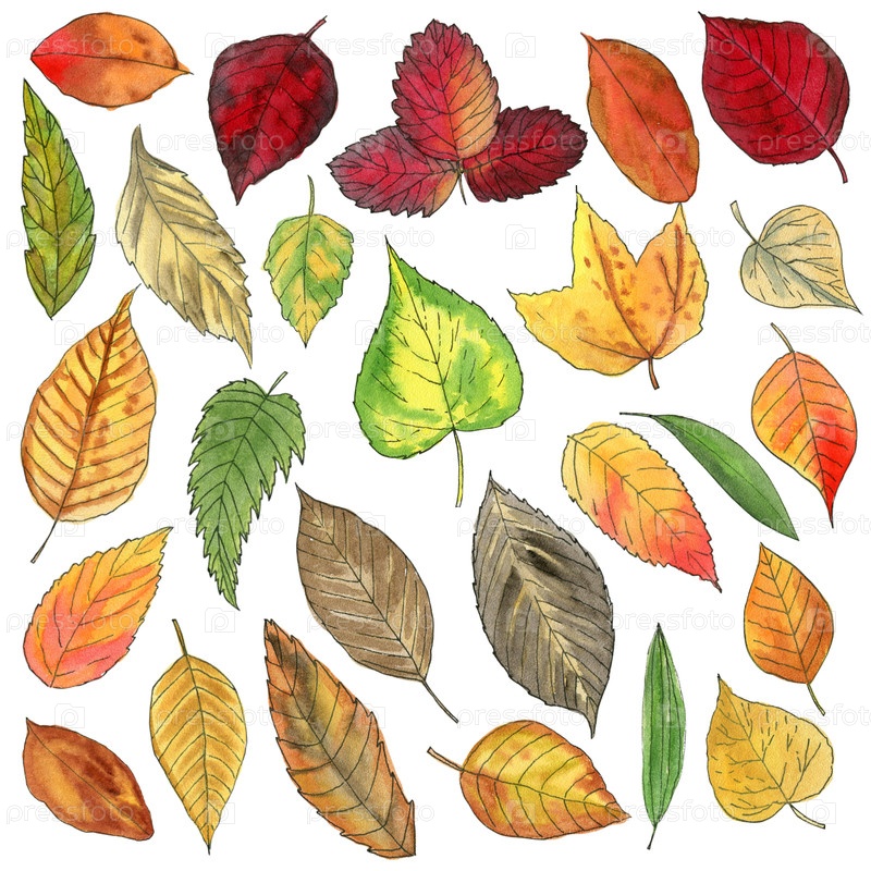 Осенние листья в стиле эскиза. акварельный набор. дизайн для открыток, сумки или футболки