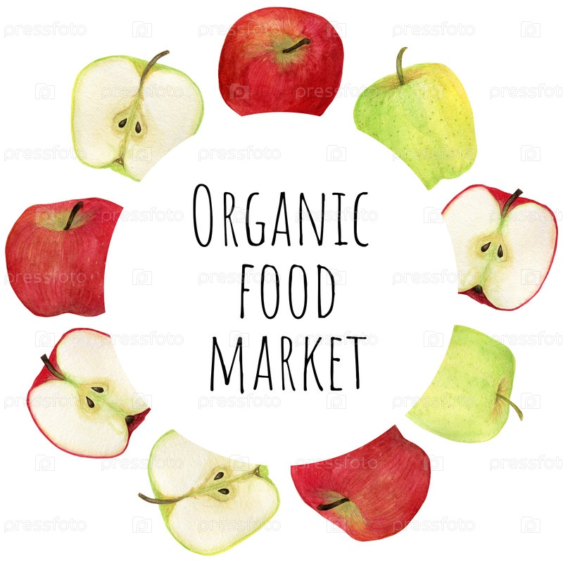Акварельный плакат с яблоками. Рамка свежих фруктов