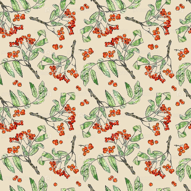Акварель рован бесшовный рисунок на бежевом фоне. Пепел в стиле эскиз. Дизайн для ткани, стеновых покрытий, открыток, приглашений, бумаги для скрапбукинга