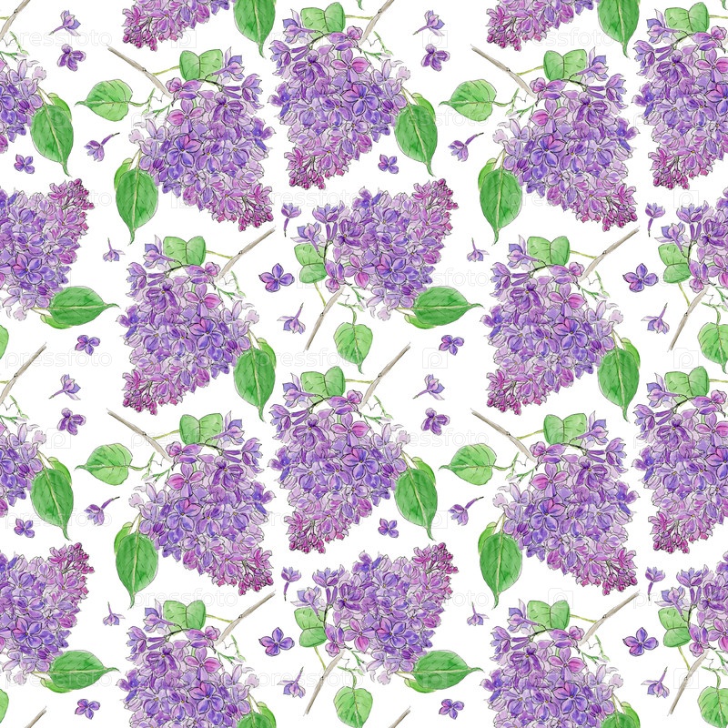 Лиловый бесшовный рисунок. Ручная иллюстрация акварели. Дизайн для ткани, настенных покрытий, открыток, приглашений, бумаги для скрапбуков