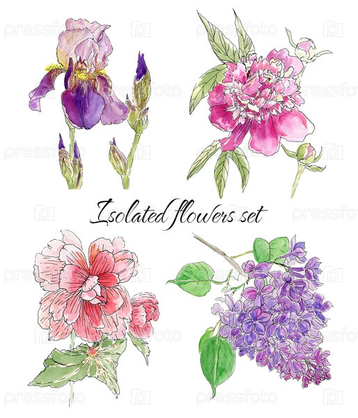 Изолированные цветы на белом фоне. стиль эскиза. дизайн для открыток, печать на сумке или футболке