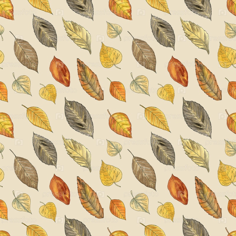 Осенние листья в стиле эскиз. Акварельный рисунок. Дизайн для ткани, настенные покрытия, открытки, приглашения, бумага для скрапбука