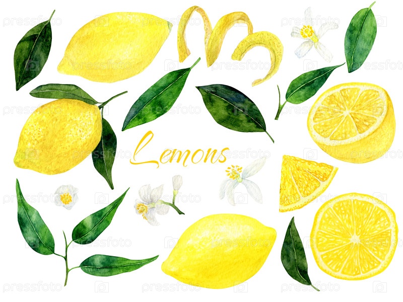 Набор акварельных лимонов.Кит дизайна для строительных открыток, приглашений, бумаги для скрапбуков и других принтов
