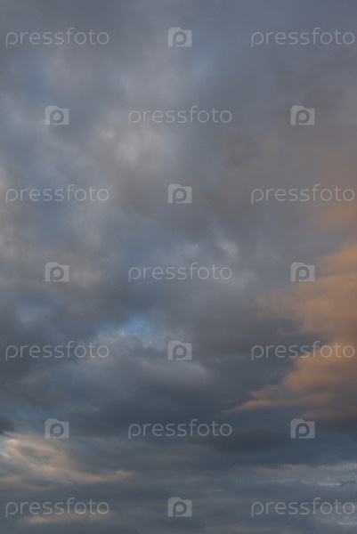 Россия. Юг Западной Сибири. Панорама вечернего летнего неба с разноцветными облаками над полями