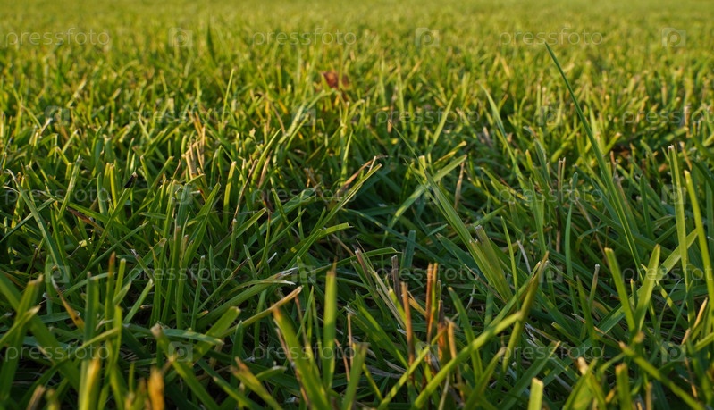 Короткая трава натурального газона в ближайшем плане. естественное покрытие для детских площадок, стадионов и пешеходных дорожек в парках и скверах. забота об окружающей среде