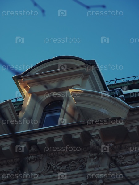 Мансардное окно в крыше исторического доходного дома в городе Санкт-Петербурге