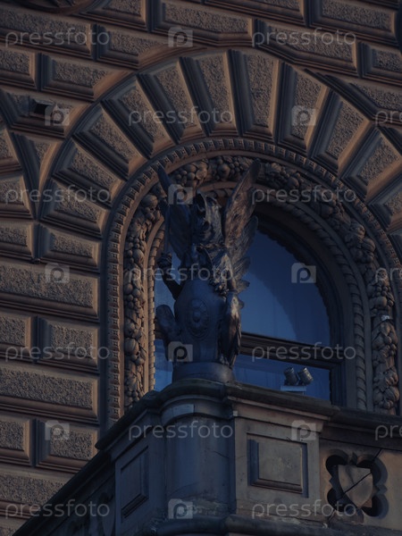 Статуя "Грифон" над входом со Дворцовой набережной в музей "Эрмитаж" города Санкт-Петербурга