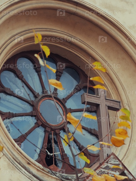 Круглое окно церкви с крестом