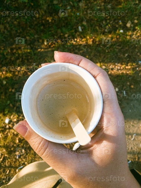 Чашка кофе в руке на природе