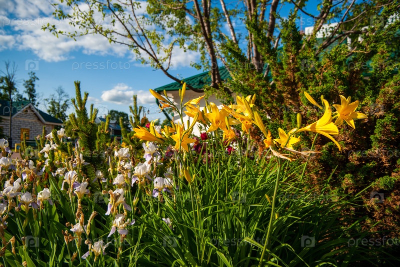 Желтые лилии в летнем саду