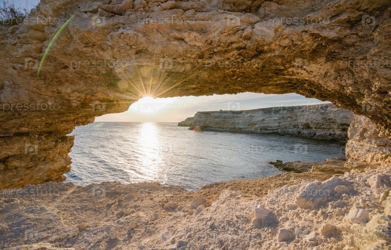 Местечко Тарханкут. Закат солнца в скалах Тарханкута. Крым