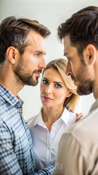Мужчина смотрит, как его жена тесно взаимодействует с другим мужчиной в напряженный момент