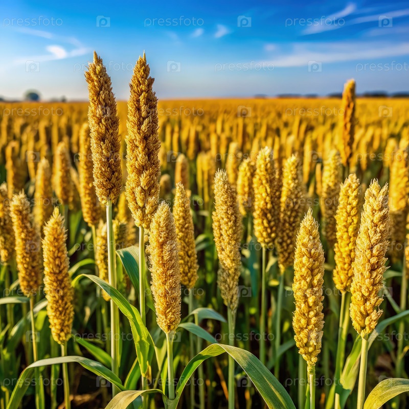 Милетные растения растут среди золотых пшеничных полей в солнечный день
