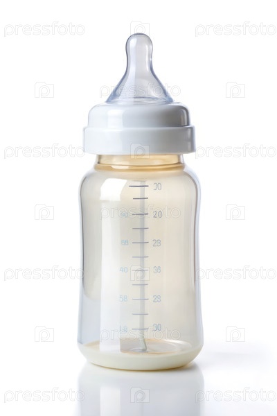 Прозрачная детская бутылка на белом фоне для ежедневного питания детей