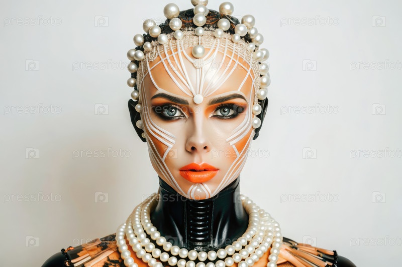 Эфирное киберготское модное шоу модели, вдохновленной инопланетянами, в минималистической обстановке