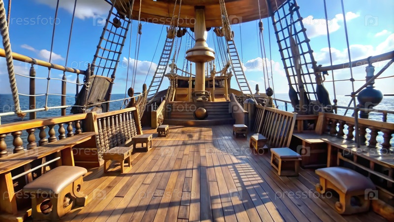 Исследование палубы пиратского корабля под наклонным углом в солнечный день