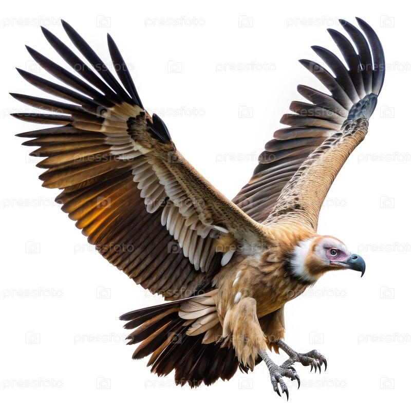 Страшный стервятник тихо взлетает в воздухе на фоне чистого неба