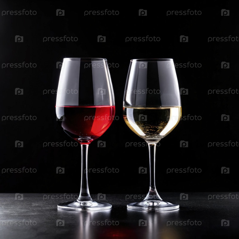 Элегантный дисплей белых и красных бокалов на черном фоне ночью