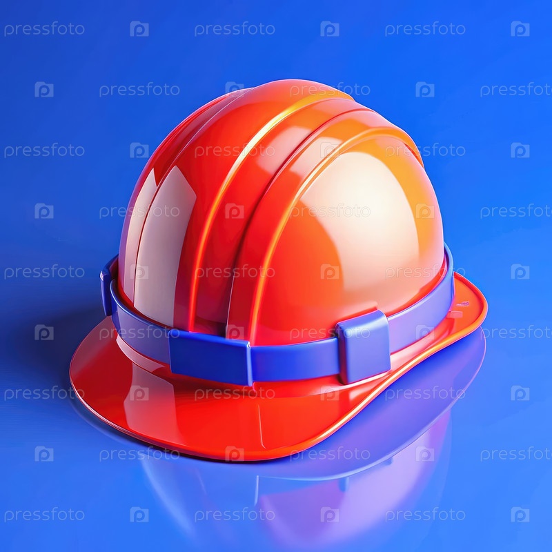 Красный строительный шлем на чистом синем фоне, готов к строительству